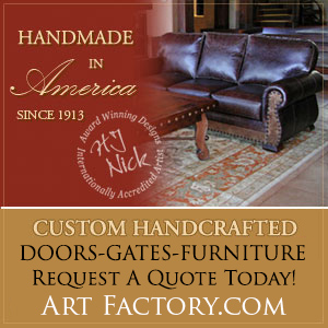 All ArtFactory.com furnishings are solid American grown timber, not paste board and veneer, and are all hand built in America by master craftsmen to stand the test of time. It's always your choice to buy American and ensure your economic future. Understanding true quality furnishings makes all the difference. If your client is in the market for the best quality, handmade in America, solid wood doors or furniture, hand forged ornamental iron cabinet knobs, entrance door handles, entrance gates, iron furniture, hand forged lighting, etc. commercial or residential: