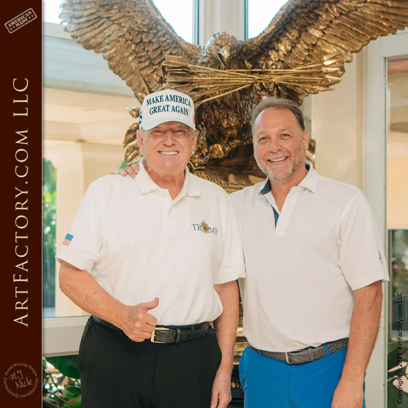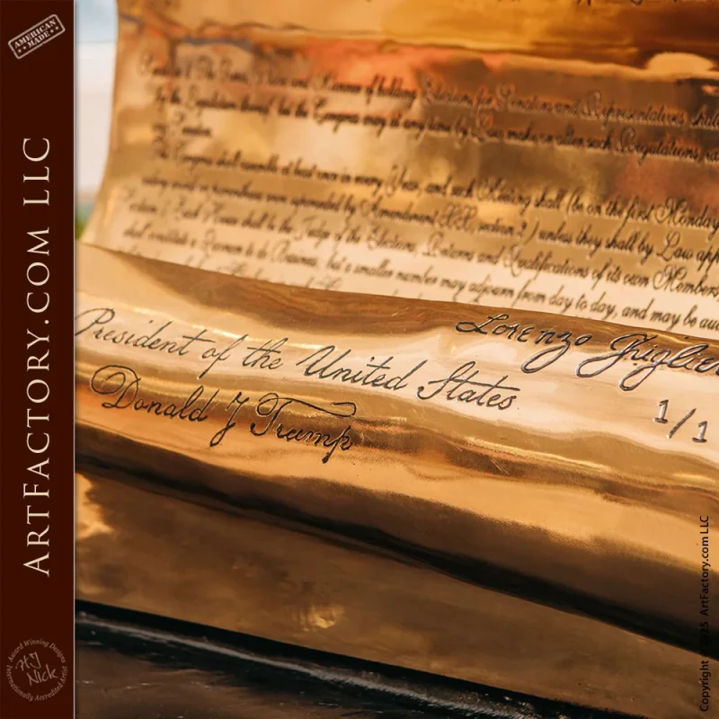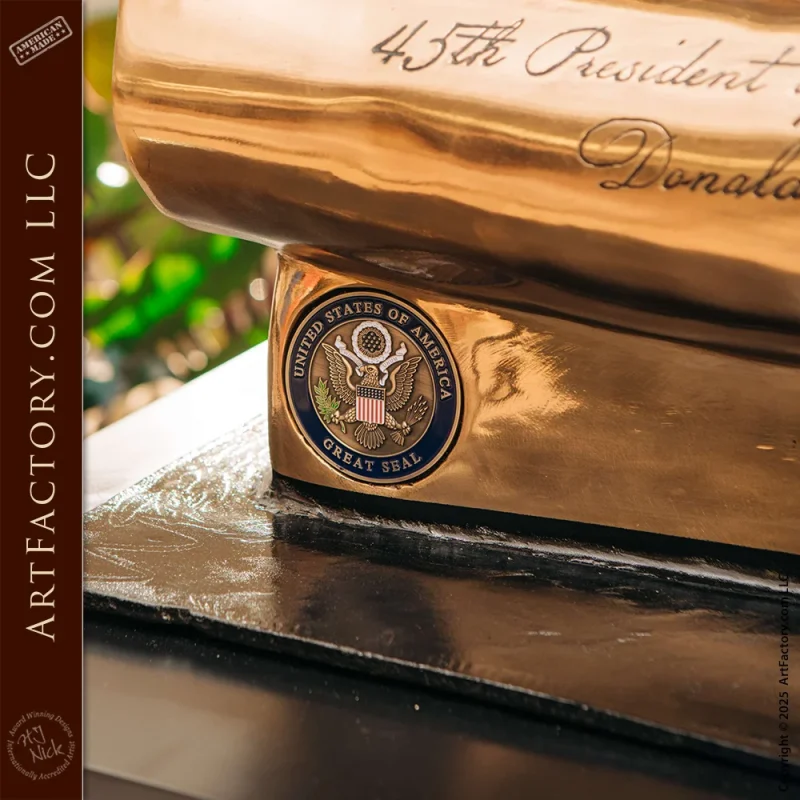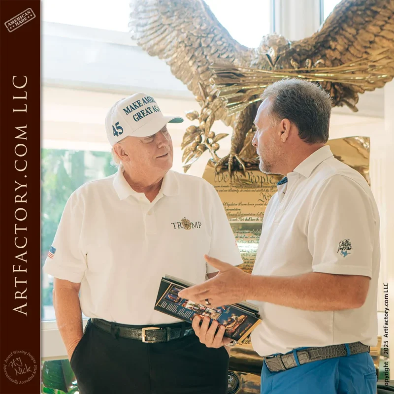 While the original Presidential American Patriot presented to President Trump is a gold-plated masterpiece, ArtFactory.com is proud to collaborate in making this historic design accessible to the public through its exclusive gallery presentation of the original bronze edition and the entire Presidential Patriots Collection.