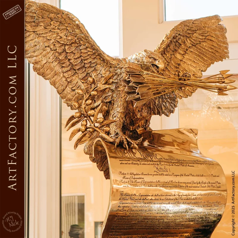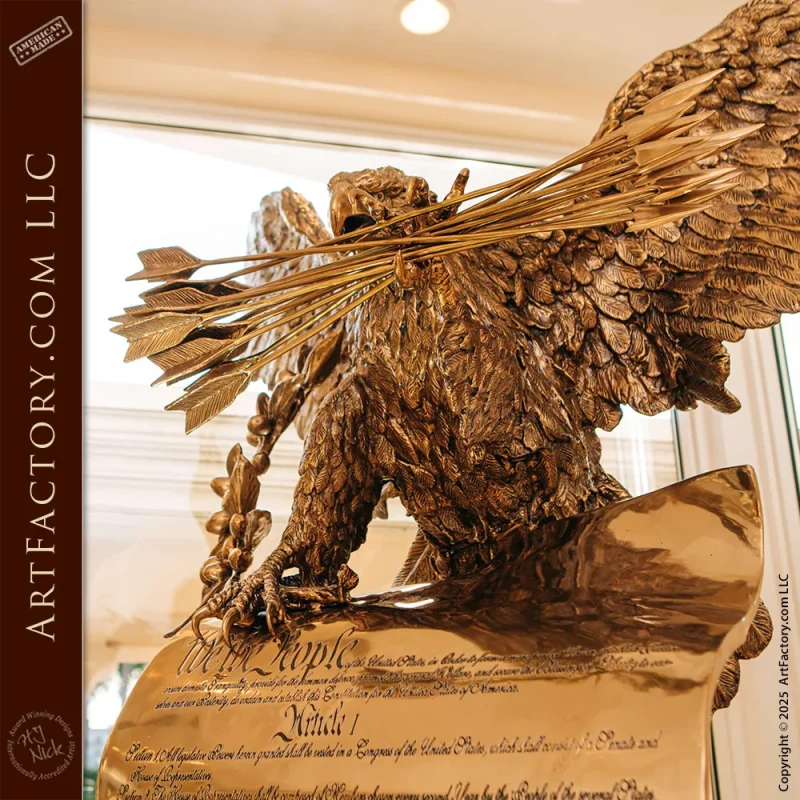 The piece, depicting a magnificent American bald eagle descending upon the U.S. Constitution, is a singular creation in gold — officially designated 1 of 1 — and was crafted to honor the 45th President of the United States.