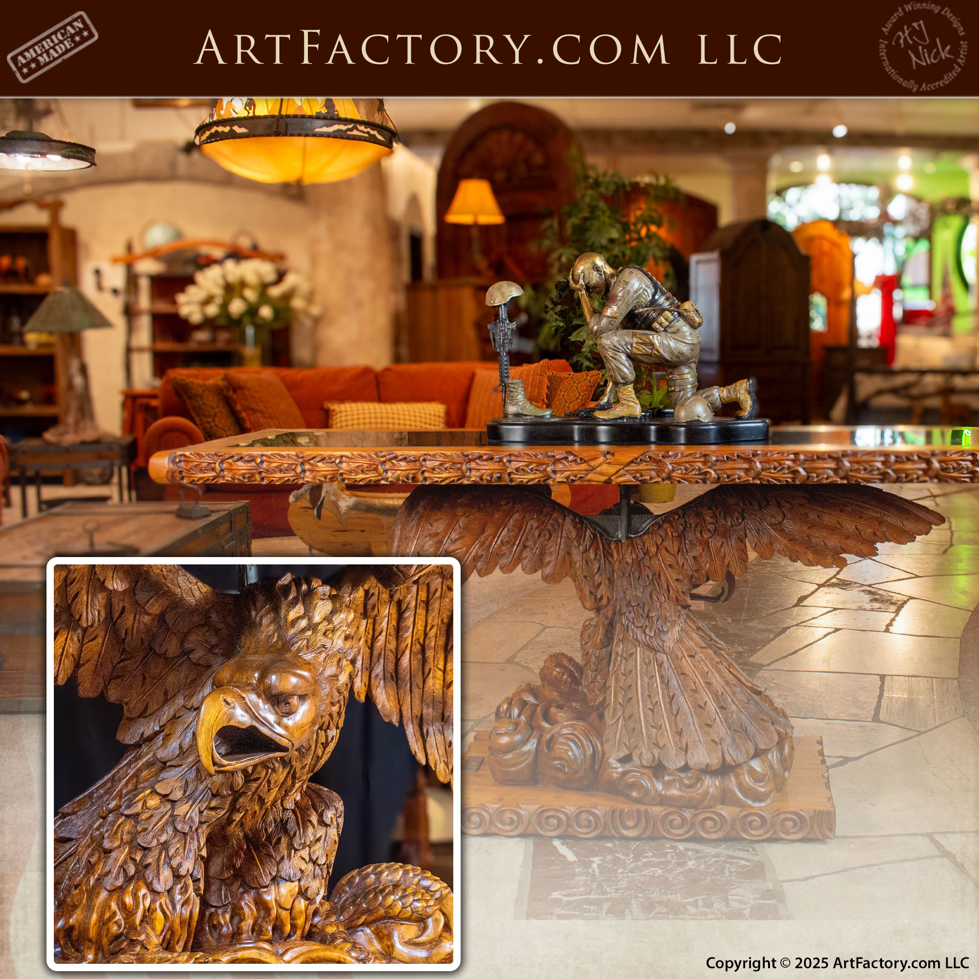 "Freedom Is Not Free" was created not merely as furniture, but as a lasting American artifact — built to endure generations and to remind all who encounter it that freedom is not inherited automatically, but maintained through work, service, sacrifice, and honor.