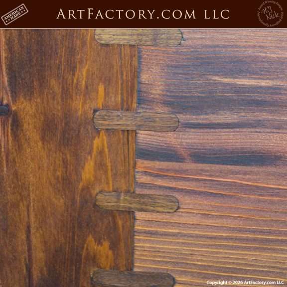 What you see is real construction: Exposed mortise and tenon joinery, through-tenons, pegged and doweled by hand, no reliance on glue or fast production methods. Every joint is mechanical. Every connection is permanent.