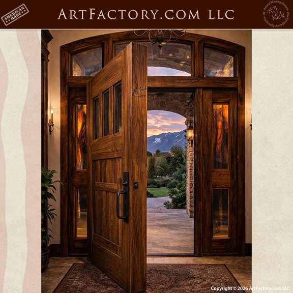The ArtFactory Fortress Entry System is an over-engineered architectural masterpiece designed for those who refuse to compromise. Hand-forged from solid cedar and cypress using 13th-century mortise and tenon joinery, this system is built for force — not just weight. Featuring 1” thick thermal “root beer” glass and a precision-balanced mechanism, it offers effortless operation with hurricane-grade protection. This is not a temporary fixture; it is a structural legacy guaranteed forever.