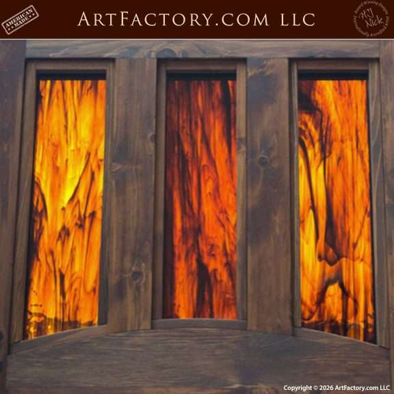 - Deep “root beer” tone with movement and depth creates the effect of living fire inside the wood