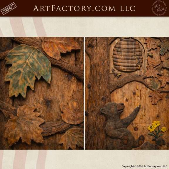 But trust… and harmony. So he carved what he saw. He carved the bear, reaching. The hive, giving. The branches, sheltering.