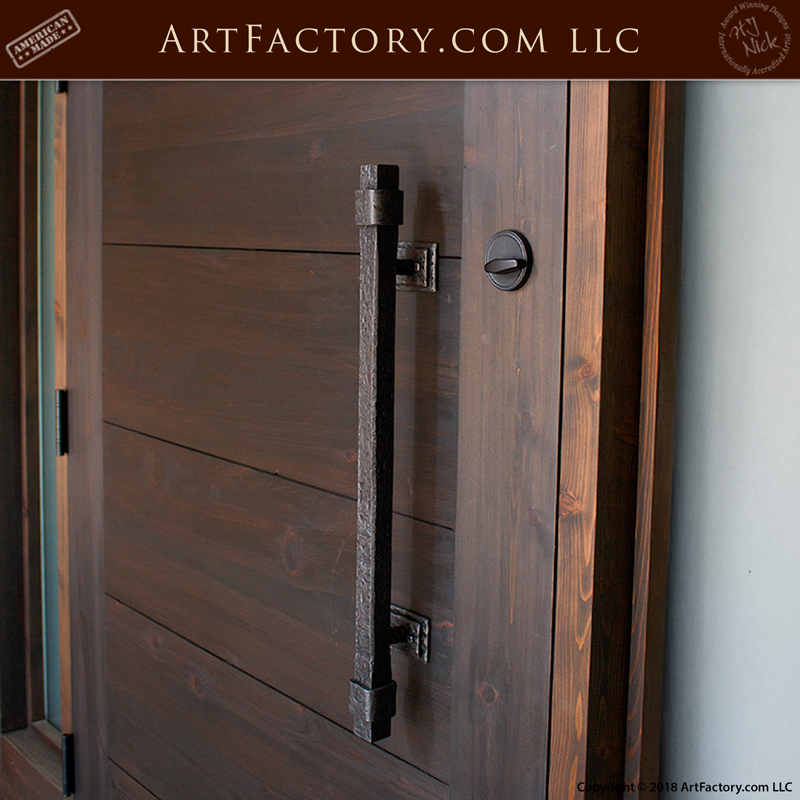 Every hinge, handle, and decorative element is hand-forged by master blacksmiths from solid wrought iron. Nothing is cast, hollow, or stamped. Each piece is hammered at the anvil, textured by hand, and finished with natural iron oxide patina that will never chip, peel, or wear away.