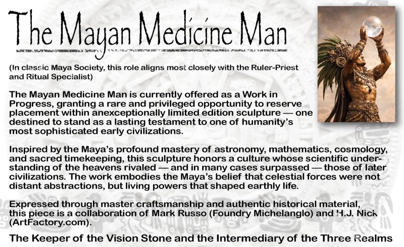 The Mayan Medicine Man is not a decorative object. It is a historically anchored fine art artifact, created to endure across generations. Once the edition is filled, no further castings — life-size or tabletop — will ever be produced.