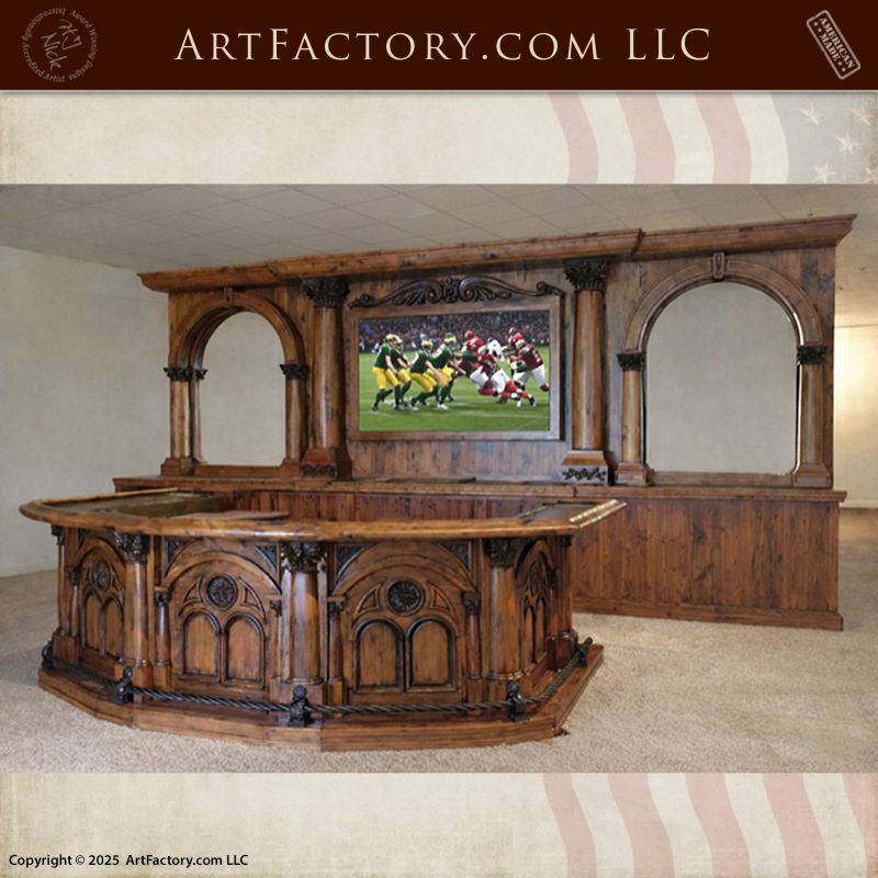 This bar is not an imitation. It is a historic-grade recreation, built with the same visual weight, structural integrity, and handcrafted detail you would expect from the finest old saloons of the American West.