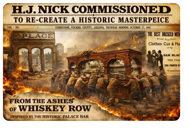 H.J. Nick & Art Factory Deliver a Masterpiece to a Montana Ranch. The legendary spirit of the Old West has found a new home in Montana, as H.J. Nick and the Art Factory master craftsmen have officially completed and delivered an authentic recreation of the historic Palace Saloon bar, back bar, and massive handcrafted fortress-style exterior doors to a private ranch compound.