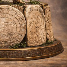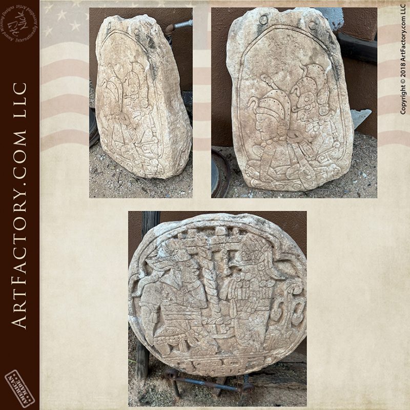 Each life-size sculpture is permanently grounded by a base incorporating genuine Mayan astrial stones dating from approximately
