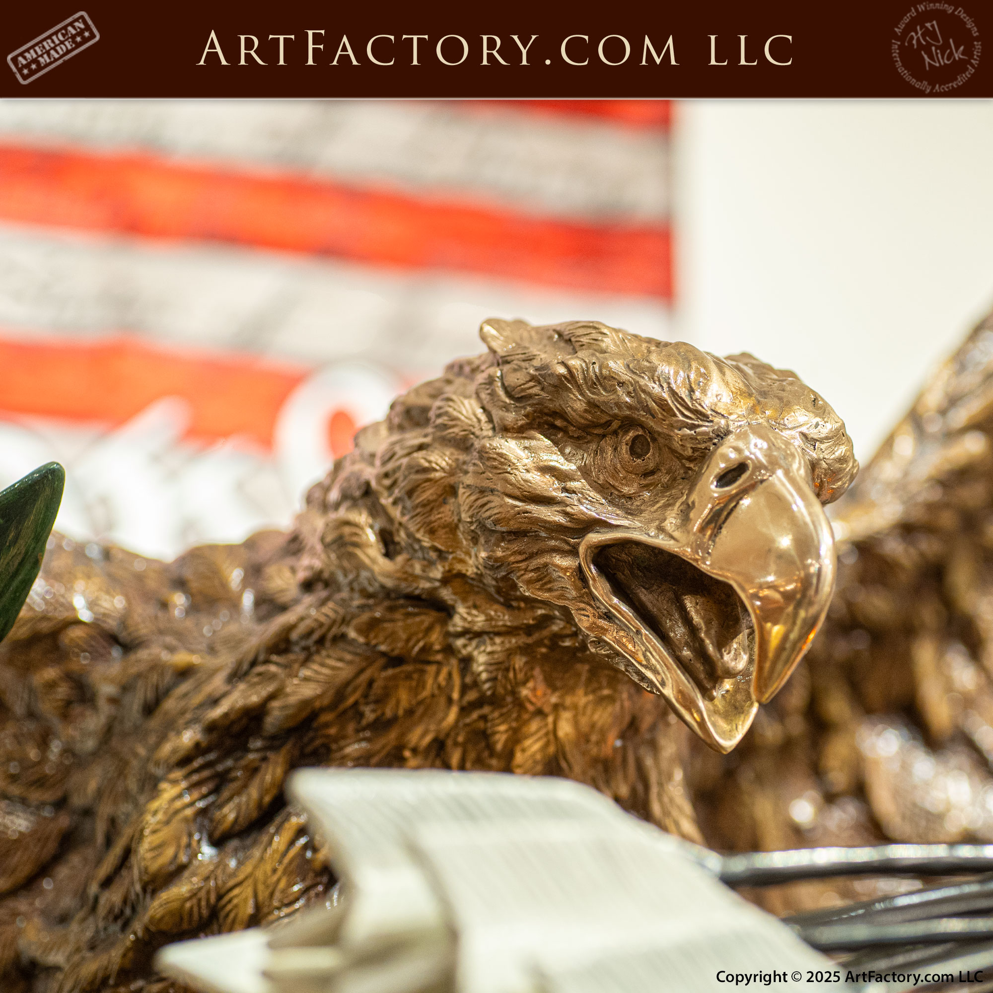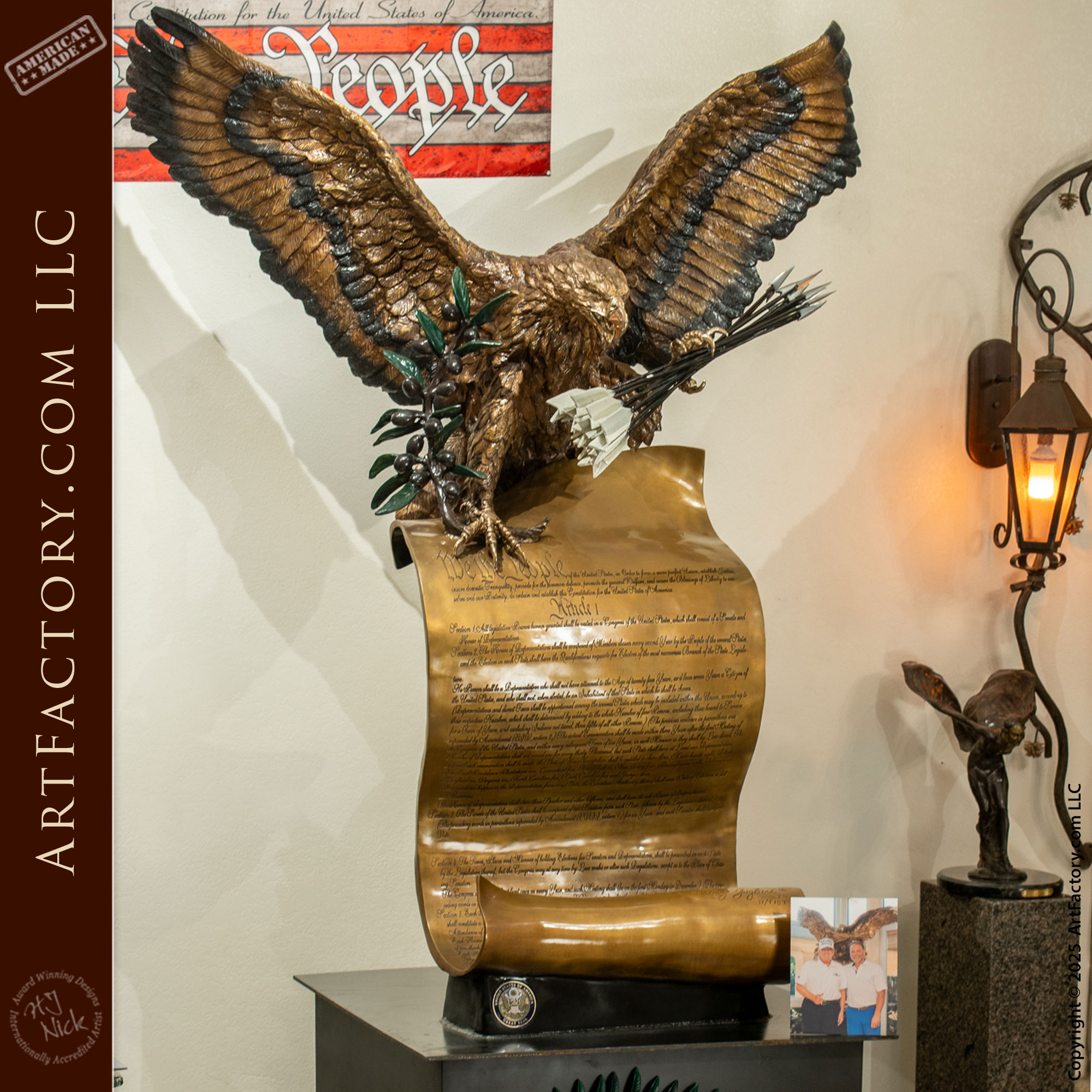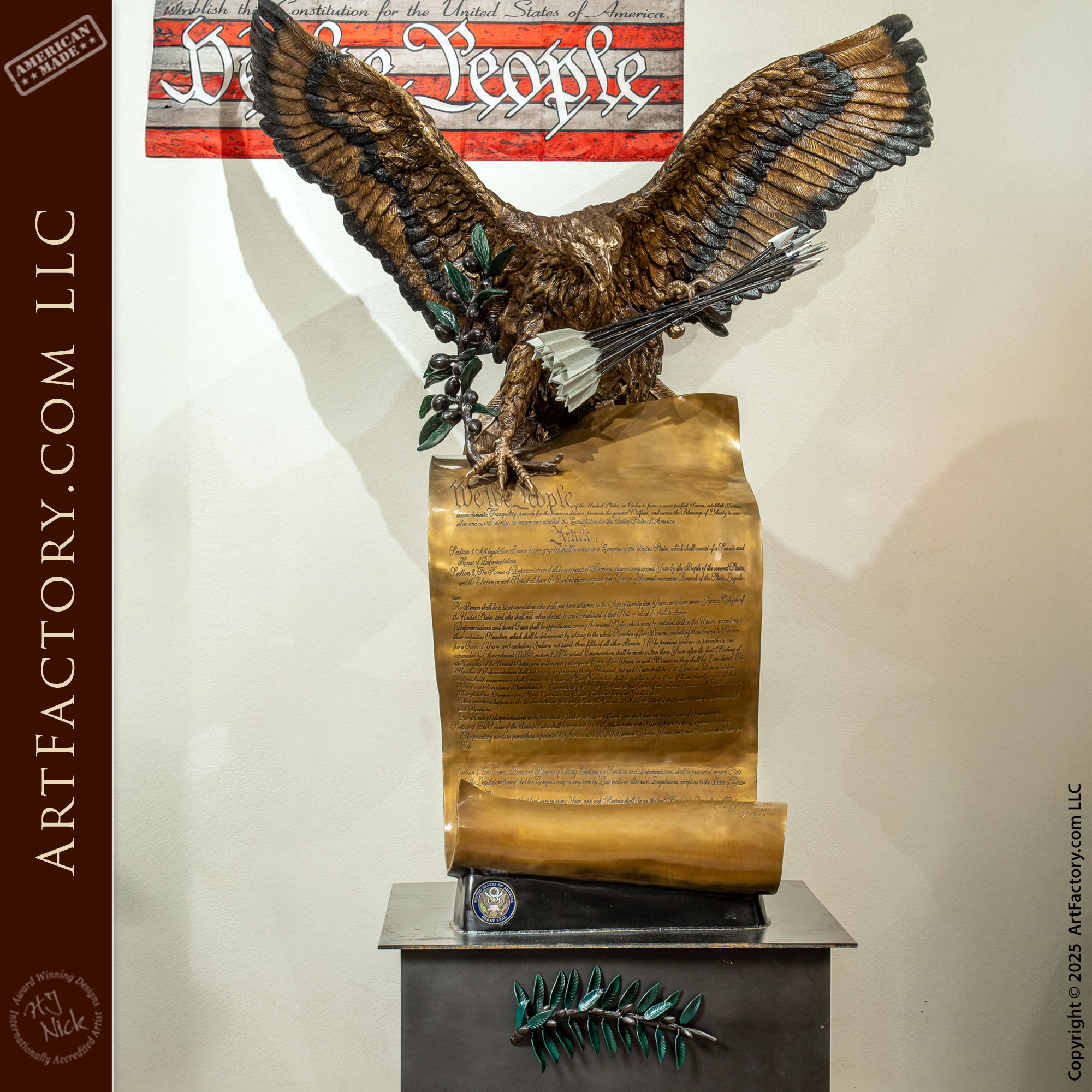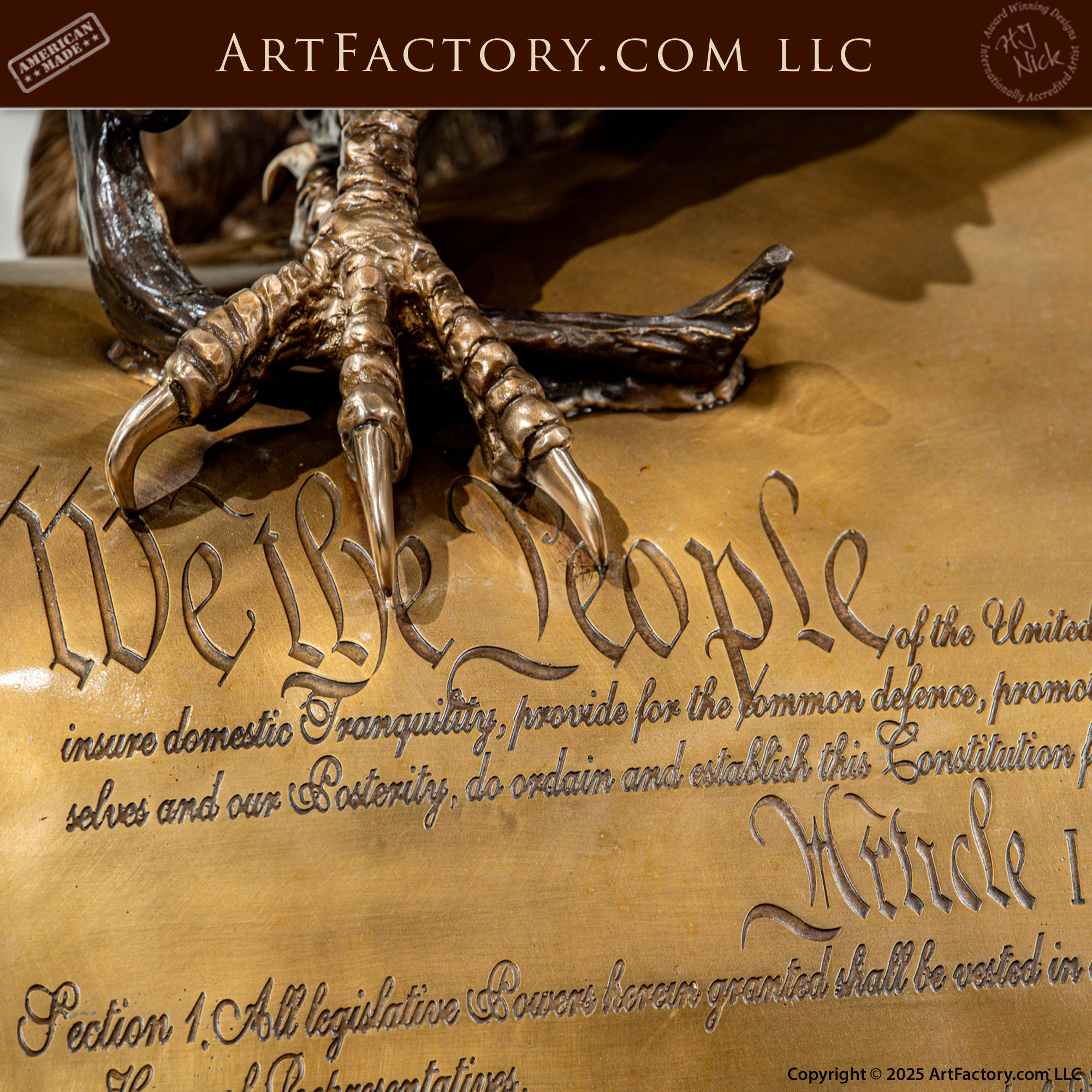 The sculpture’s symbolism is profound, with the eagle dynamically descending upon the U.S. Constitution, gripping: